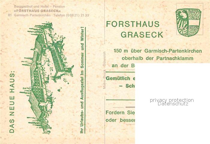 72682192 GARMISCH-PARTENKIRCHEN Bayern Hotel Foersthaus Graseck postalisch nicht gelaufen Werbekarte (keine Postkarte) Erhaltung siehe scans [AndreD76] KatCode: 11110009180117