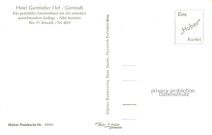 74099425 GARMISCH-PARTENKIRCHEN Bayern Hotel Garmischer Hof mit Zugspitzgruppe postalisch nicht gelaufen Erhaltung siehe scans [WerneD78] Wern Katcode 11110009180117