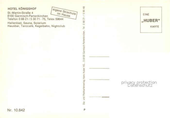 73332192 GARMISCH-PARTENKIRCHEN Bayern Hotel Koenigshof postalisch nicht gelaufen Erhaltung siehe scans [LiesaD40] KatCode: 11110009180117