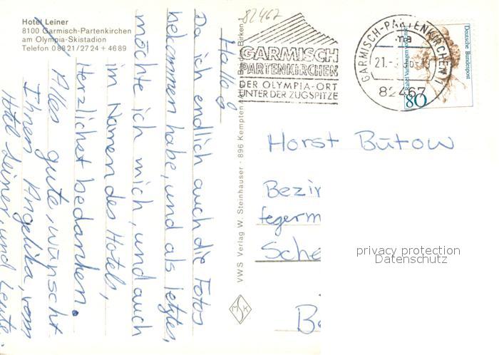 73653061 alte Postkarte GARMISCH-PARTENKIRCHEN Bayern Hotel Leiner Gaststube postalisch gelaufen Erhaltung siehe scans [WerneD78] KatCode: 11110009180117