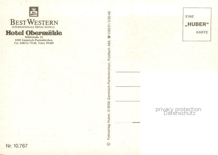 73785601 GARMISCH-PARTENKIRCHEN Bayern Hotel Obermuehle Winter Schnee postalisch nicht gelaufen Erhaltung siehe scans [LiesaD40] Lies Katcode 11110009180117