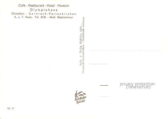 73005304 GARMISCH-PARTENKIRCHEN Bayern Hotel Olympiahaus Skistadion Schanze postalisch nicht gelaufen Erhaltung siehe scans [WerneD78] KatCode: 11110009180117