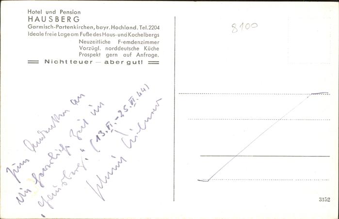 41107954 GARMISCH-PARTENKIRCHEN Bayern Hotel-Pension Hausberg postalisch nicht gelaufen Alte Ansichtskarte Postkarte hz_U Katcode 11110009180117