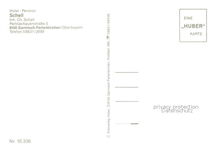 73109160 GARMISCH-PARTENKIRCHEN Bayern Hotel Pension Schell postalisch nicht gelaufen Erhaltung siehe scans [KathaD81] KatCode: 11110009180117