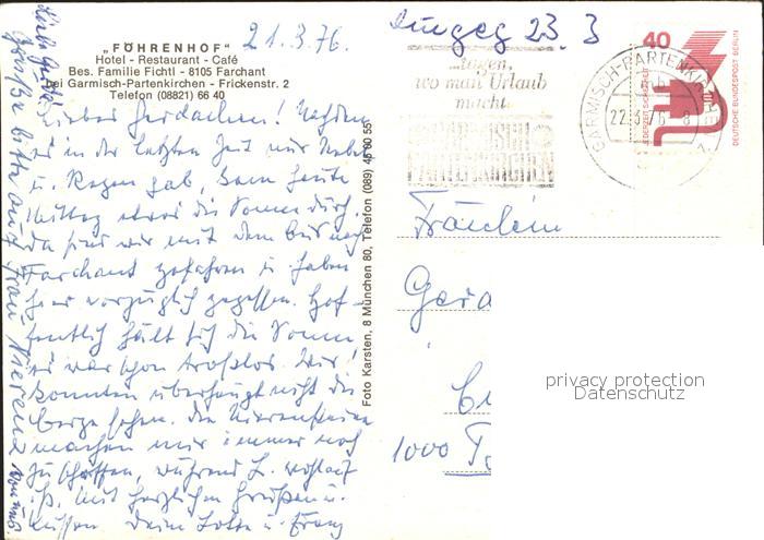 72261963 alte Postkarte GARMISCH-PARTENKIRCHEN Bayern Hotel Restaurant Foehrenhof postalisch gelaufen Erhaltung siehe scans KatCode: 11110009180117