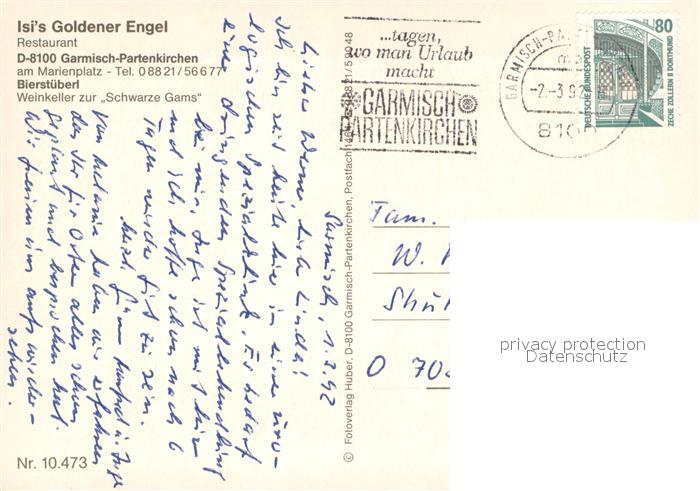73684239 alte Postkarte GARMISCH-PARTENKIRCHEN Bayern Isis Goldener Engel Restaurant postalisch gelaufen Erhaltung siehe scans [LiesaD40] KatCode: 11110009180117