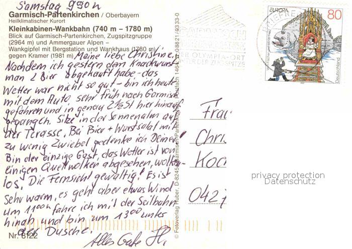 72725811 alte Postkarte GARMISCH-PARTENKIRCHEN Bayern Kleinkabinenbahn Wankhaus Bergstation postalisch gelaufen Erhaltung siehe scans [WerneD78] KatCode: 11110009180117