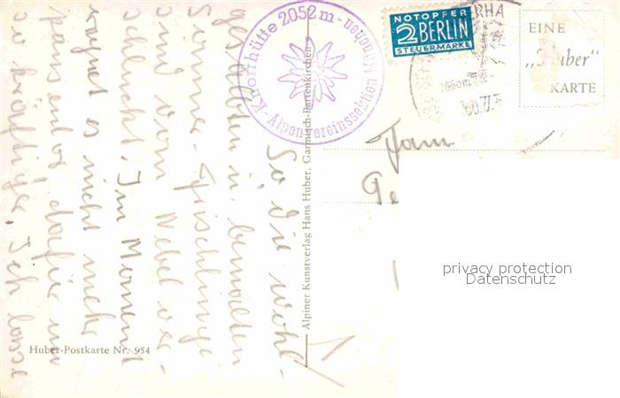 72799222 alte Postkarte GARMISCH-PARTENKIRCHEN Bayern Knorrhuette am Zugspitzplatt Berghaus Wettersteingebirge Huber Karte Nr 954 postalisch gelaufen Erhaltung siehe scans [FriedD77] KatCode: 11110009180117