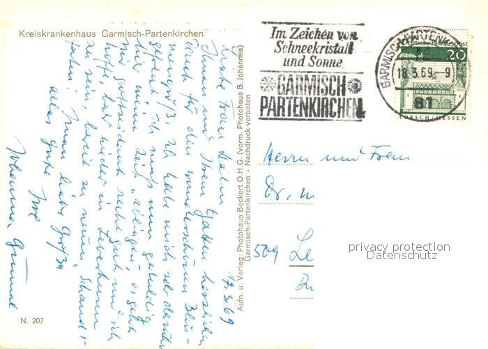 72947121 alte Postkarte GARMISCH-PARTENKIRCHEN Bayern Kreiskrankenhaus postalisch gelaufen Erhaltung siehe scans [LiesaD40] KatCode: 11110009180117