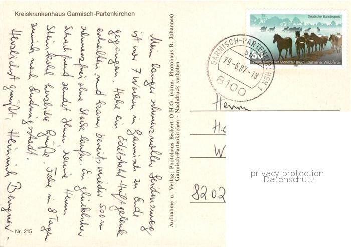 73170475 alte Postkarte GARMISCH-PARTENKIRCHEN Bayern Kreiskrankenhaus Alpen postalisch gelaufen Erhaltung siehe scans [FriedD77] KatCode: 11110009180117