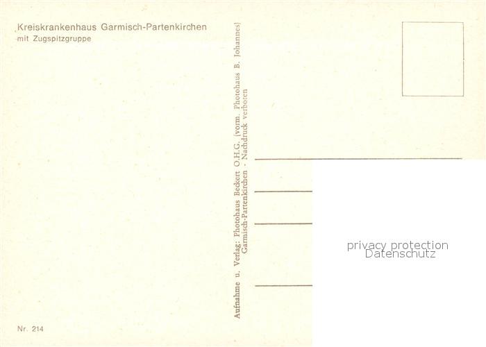 73542457 GARMISCH-PARTENKIRCHEN Bayern Kreiskrankenhaus Zugspitzgruppe postalisch nicht gelaufen Erhaltung siehe scans [KathaD81] KatCode: 11110009180117