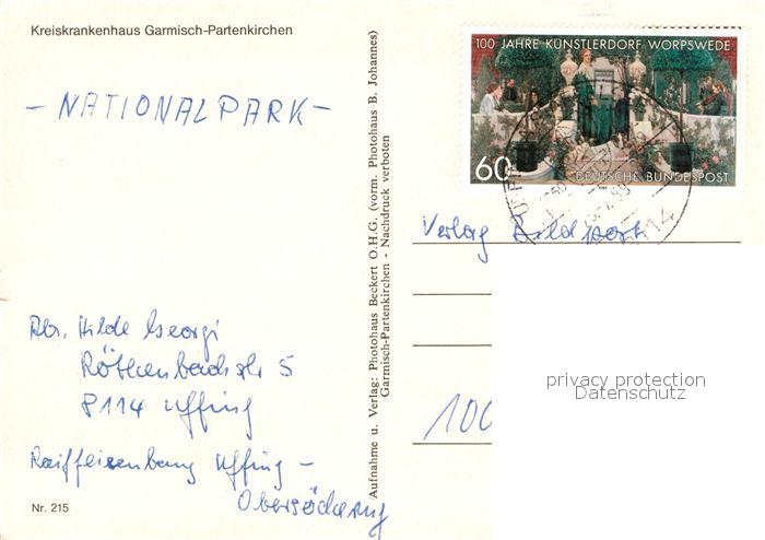 72972468 alte Postkarte GARMISCH-PARTENKIRCHEN Bayern Kreiskrankenhaus postalisch gelaufen Erhaltung siehe scans [PaolaD17] KatCode: 11110009180117