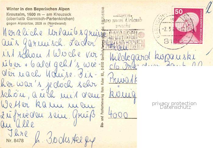 72654807 alte Postkarte GARMISCH-PARTENKIRCHEN Bayern Kreuzalm postalisch gelaufen Erhaltung siehe scans [AndreD76] KatCode: 11110009180117