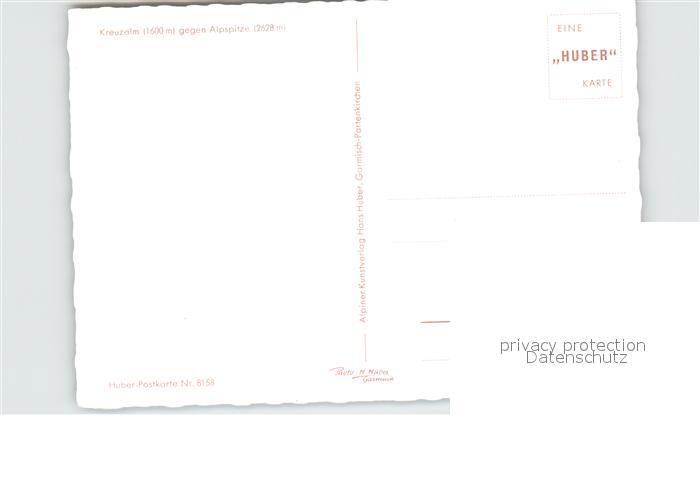 72582522 GARMISCH-PARTENKIRCHEN Bayern Kreuzalm gegen Alpspitze Huber Karte Nr 8158 postalisch nicht gelaufen Erhaltung siehe scans [FriedD77] KatCode: 11110009180117