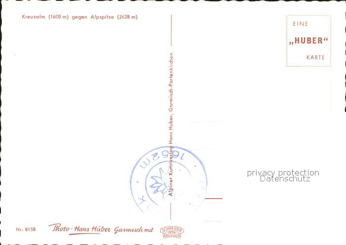 72599810 GARMISCH-PARTENKIRCHEN Bayern Kreuzalm gegen Alpspitze Wettersteingebirge Huber Karte Nr 8158 postalisch nicht gelaufen Erhaltung siehe scans [FriedD77] KatCode: 11110009180117