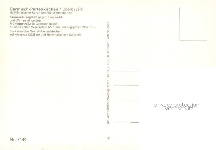 73243994 GARMISCH-PARTENKIRCHEN Bayern Kreuzeck Fruehlingsstrasse postalisch nicht gelaufen Erhaltung siehe scans [LiesaD40] KatCode: 11110009180117