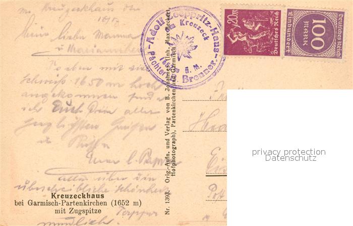 43037694 alte Postkarte GARMISCH-PARTENKIRCHEN Bayern Kreuzeckhaus mit Zugspitze Wettersteingebirge postalisch gelaufen Erhaltung siehe scans [FriedD77] KatCode: 11110009180117