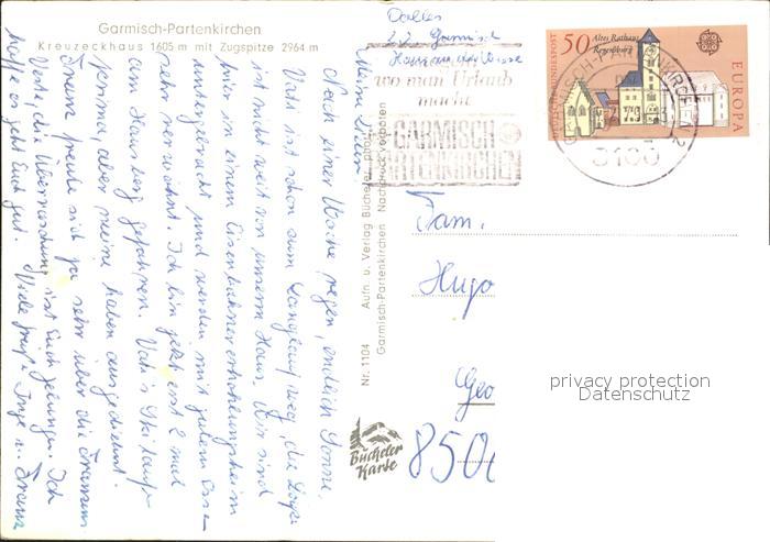 71829391 alte Postkarte GARMISCH-PARTENKIRCHEN Bayern Kreuzerhaus mit Zugspitze postalisch gelaufen Erhaltung siehe scans KatCode: 11110009180117