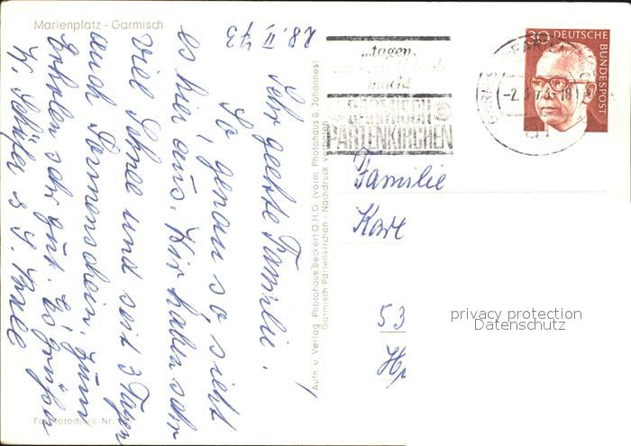 72578726 alte Postkarte GARMISCH-PARTENKIRCHEN Bayern Marienplatz postalisch gelaufen Erhaltung siehe scans [LiesaD40] KatCode: 11110009180117