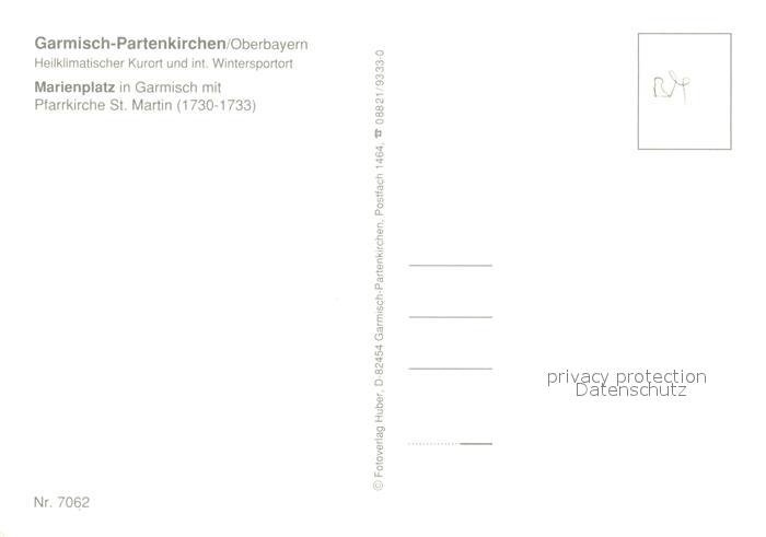 73271146 GARMISCH-PARTENKIRCHEN Bayern Marienplatz mit Pfarrkirche postalisch nicht gelaufen Erhaltung siehe scans [WerneD78] KatCode: 11110009180117