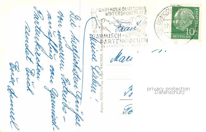 72750118 alte Postkarte GARMISCH-PARTENKIRCHEN Bayern Marienplatz postalisch gelaufen Erhaltung siehe scans [AndreD76] KatCode: 11110009180117