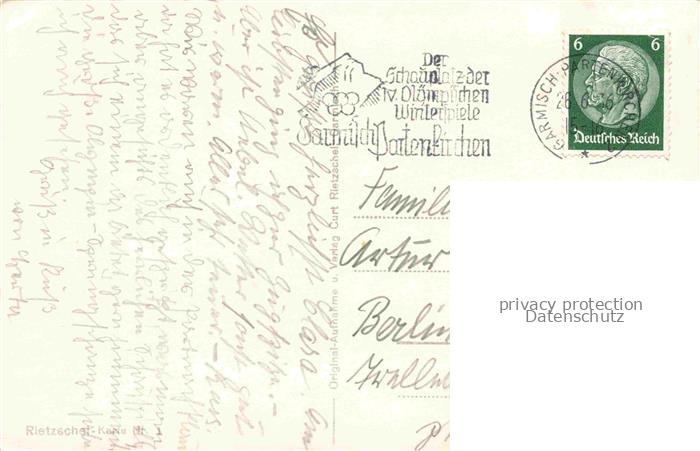 74026507 GARMISCH-PARTENKIRCHEN Bayern Marktplatz mit Zugspitzgruppe Wettersteingebirge postalisch gelaufen Erhaltung siehe scans [FriedD77] alte Postkarte Frie Katcode 11110009180117