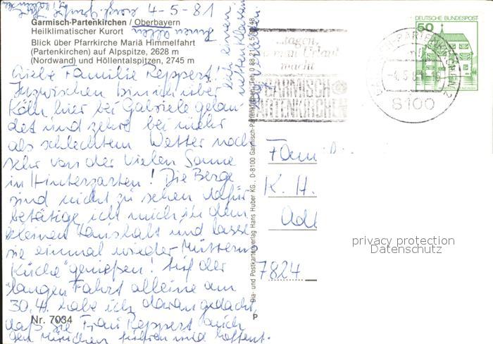 72479933 alte Postkarte GARMISCH-PARTENKIRCHEN Bayern mit Pfarrkirche postalisch gelaufen Erhaltung siehe scans KatCode: 11110009180117