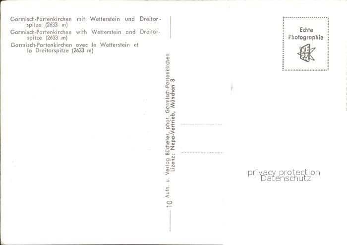 72408873 GARMISCH-PARTENKIRCHEN Bayern mit Wetterstein und Dreitorspitze postalisch nicht gelaufen Erhaltung siehe scans KatCode: 11110009180117