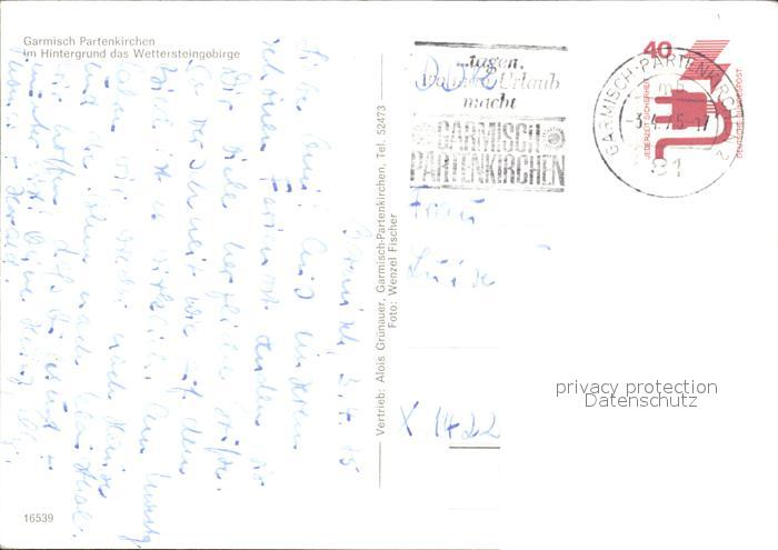 72364835 alte Postkarte GARMISCH-PARTENKIRCHEN Bayern mit Wettersteingebirge postalisch gelaufen Erhaltung siehe scans KatCode: 11110009180117