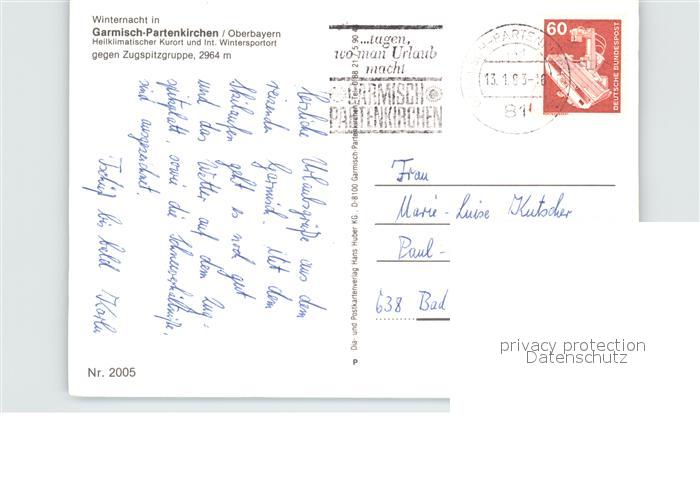 72533796 alte Postkarte GARMISCH-PARTENKIRCHEN Bayern mit Zugspitzgruppe postalisch gelaufen Erhaltung siehe scans [LiesaD40 kt094box] KatCode: 11110009180117