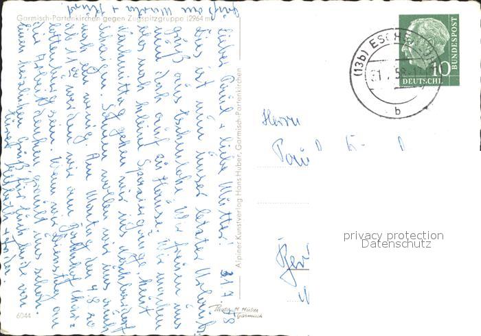 72364871 alte Postkarte GARMISCH-PARTENKIRCHEN Bayern mit Zugspitzgruppe postalisch gelaufen Erhaltung siehe scans KatCode: 11110009180117