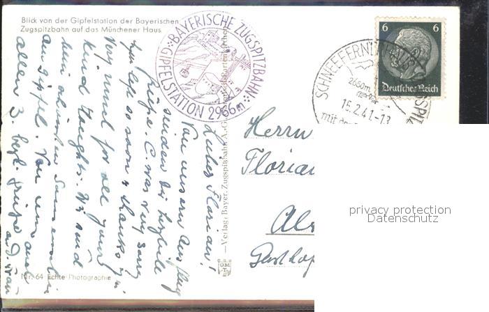 72129308 alte Postkarte GARMISCH-PARTENKIRCHEN Bayern Muenchener Haus Blick von Gipfelstation Bayerische Zugspitzbahn postalisch gelaufen KatCode: 11110009180117
