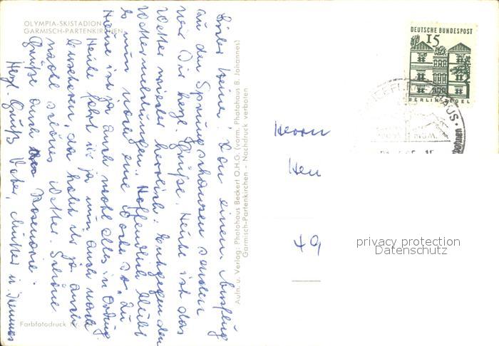 71932184 alte Postkarte GARMISCH-PARTENKIRCHEN Bayern Olympia Skistadion postalisch gelaufen Erhaltung siehe scans KatCode: 11110009180117