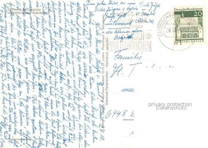 73080532 alte Postkarte GARMISCH-PARTENKIRCHEN Bayern Olympia Skistadion im Sommer postalisch gelaufen Erhaltung siehe scans [FriedD77] KatCode: 11110009180117