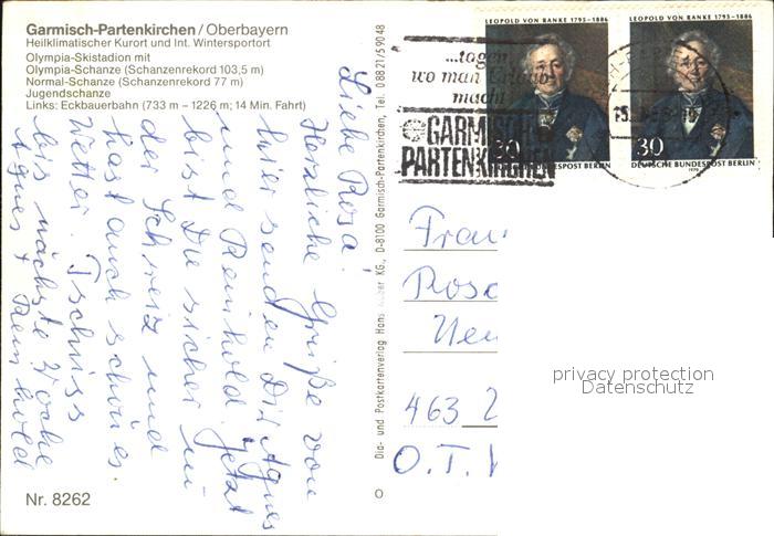 72417078 alte Postkarte GARMISCH-PARTENKIRCHEN Bayern Olympia-Skistadion Olympia-Schanze postalisch gelaufen Erhaltung siehe scans KatCode: 11110009180117