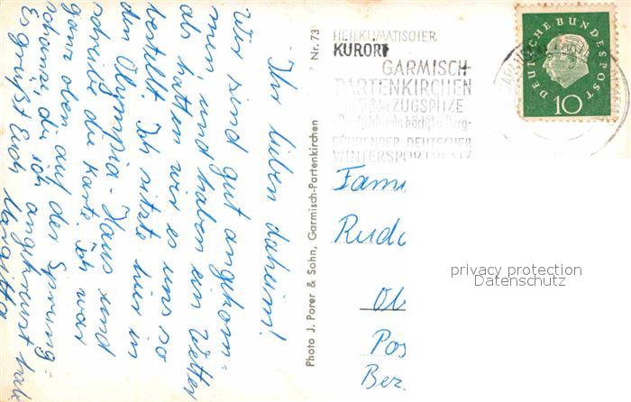 72749189 alte Postkarte GARMISCH-PARTENKIRCHEN Bayern Olypiaschanze Skistadion postalisch gelaufen Erhaltung siehe scans [AndreD76] KatCode: 11110009180117