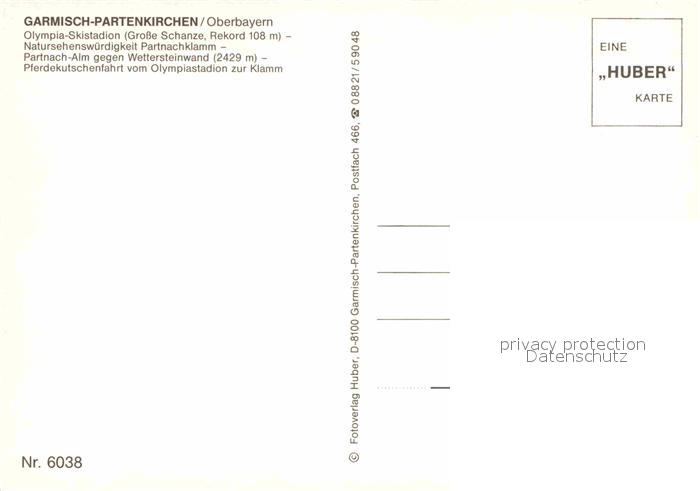 72641280 GARMISCH-PARTENKIRCHEN Bayern Oylmpia Skistadion Skisprungschanzen Partnachklamm Kutschenfahrt Partnachalm Huber Karte Nr 6038 postalisch nicht gelaufen Erhaltung siehe scans [FriedD77] KatCode: 11110009180117