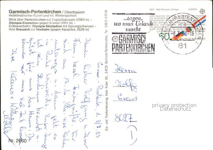72406844 alte Postkarte GARMISCH-PARTENKIRCHEN Bayern Panorama Kurort Wintersportplatz Zugspitzgruppe Olympia Eisstadion Kramer Skistadion Sprungschanzen Kreuzeck Hochalm postalisch gelaufen Erhaltung siehe scans KatCode: 11110009180117
