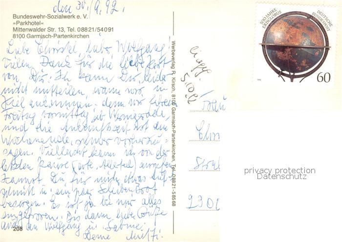 73684205 alte Postkarte GARMISCH-PARTENKIRCHEN Bayern Parkhotel Bundeswehr Sozialwerke e.V. Schwimmbad postalisch gelaufen Erhaltung siehe scans [LiesaD40] KatCode: 11110009180117