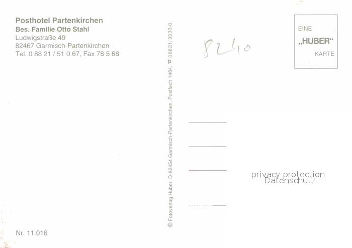 72883576 GARMISCH-PARTENKIRCHEN Bayern Posthotel postalisch nicht gelaufen Erhaltung siehe scans [AndreD76] KatCode: 11110009180117