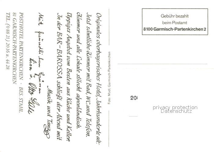 72960825 alte Postkarte GARMISCH-PARTENKIRCHEN Bayern Posthotel postalisch gelaufen Erhaltung siehe scans [LiesaD40] KatCode: 11110009180117