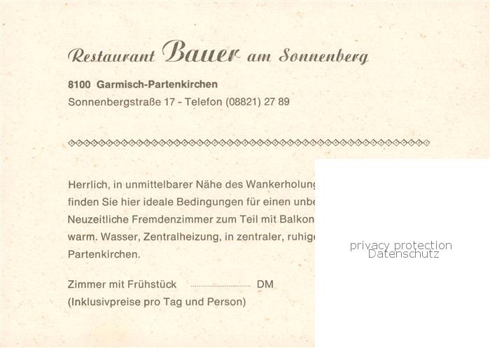 73863965 GARMISCH-PARTENKIRCHEN Bayern Restaurant Bauer am Sonnenberg Gastraeume Panorama postalisch nicht gelaufen Werbekarte (keine Postkarte) Erhaltung siehe scans [WerneD78] Werbekarte (keine Postkarte) Wern Katcode 11110009180117