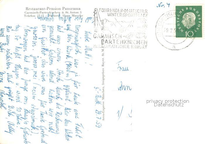 73668250 alte Postkarte GARMISCH-PARTENKIRCHEN Bayern Restaurant Pension Panorama postalisch gelaufen Erhaltung siehe scans [WerneD78] KatCode: 11110009180117