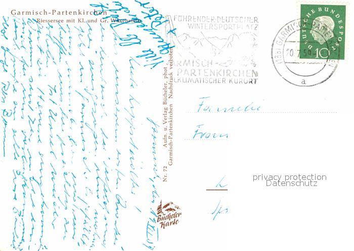 72711818 alte Postkarte GARMISCH-PARTENKIRCHEN Bayern Riessersee mit Waxenstein postalisch gelaufen Erhaltung siehe scans [LiesaD40] KatCode: 11110009180117
