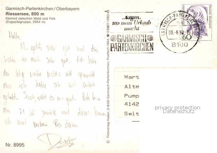 72736168 alte Postkarte GARMISCH-PARTENKIRCHEN Bayern Riessersee mit Zugspitzgruppe Wettersteingebirge postalisch gelaufen Erhaltung siehe scans [FriedD77] KatCode: 11110009180117