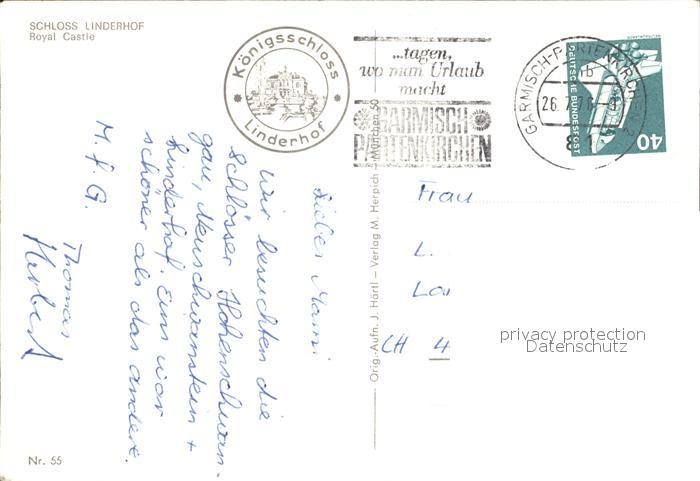 72352400 alte Postkarte GARMISCH-PARTENKIRCHEN Bayern Schloss Lindenhof postalisch gelaufen Erhaltung siehe scans KatCode: 11110009180117