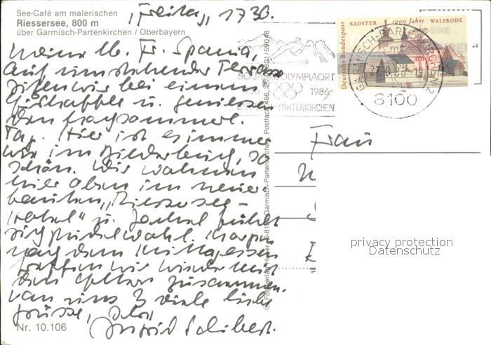 71905718 alte Postkarte GARMISCH-PARTENKIRCHEN Bayern SeeCafe am Riessersee postalisch gelaufen KatCode: 11110009180117