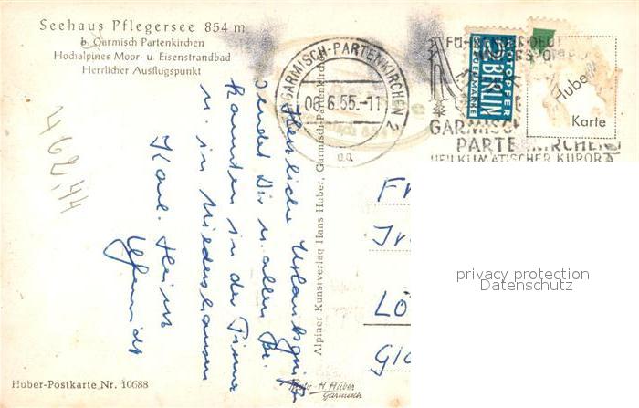 73155491 alte Postkarte GARMISCH-PARTENKIRCHEN Bayern Seehaus Gasthof Pflegersee gegen Koenigsstand Ammergauer Alpen postalisch gelaufen Erhaltung siehe scans [FriedD77] KatCode: 11110009180117