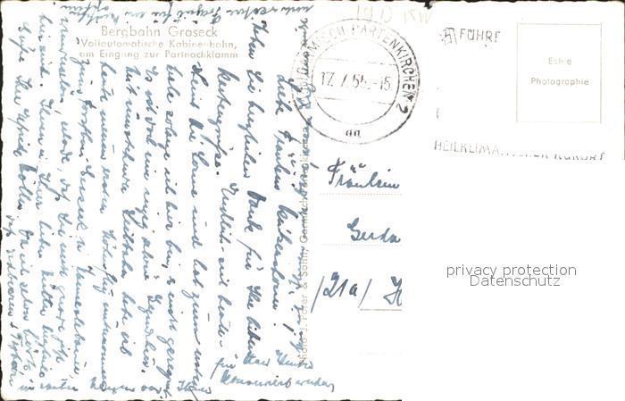 71926532 alte Postkarte GARMISCH-PARTENKIRCHEN Bayern Seilbahn Graseck postalisch gelaufen Erhaltung siehe scans KatCode: 11110009180117