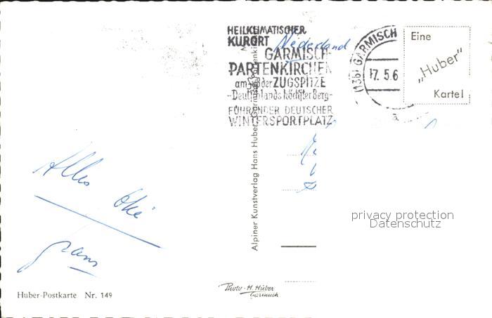 72446577 alte Postkarte GARMISCH-PARTENKIRCHEN Bayern Strassenpartie Zugspitze Wettersteingebirge Riessersee Partnachklamm Muenchnerhaus Edelweiss Huber Karte Nr 149 postalisch gelaufen Erhaltung siehe scans KatCode: 11110009180117